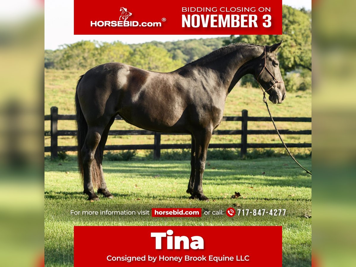 ⚜️𝐓𝐇𝐄 𝐅𝐀𝐋𝐋 𝐇𝐄𝐑𝐈𝐓𝐀𝐆𝐄 𝐂𝐋𝐀𝐒𝐒𝐈𝐂⚜️ Happening now thru MONDAY | NOVEMBER 3rd - Available EXCLUSIVELY on HorseBid's website! For more details and to register visit: www.Horsebid.com CONSIGNOR CONTACT: Honey Brook Equine LLC 717-847-4277 LOCATION: Honey Brook, PA BREED: Friesian REGISTERED: Yes REGISTERED NAME: Miss Tiana COLOR: Black HEIGHT: 17 AGE: 7 GENDER: Mare Meet Tina as we call her,,one that is as well put together as you can find em, and one that has good looks no matter what angle you look at her,, she's got a sweet personality and is the horse that will meet you at the gate and ask what you want of her today!! On the ground Tina is very well mannered and she is good for anyone to lead, and she will stand their all day for you to groom her,as she loves being loved on.. On the trail Tina has miles of experience and crosses any creek,bridge or log that gets in your way,she is happy to go out and explore and she'll stay steady all day, she's one your husband can get on and feel safe on... In the ring Tina has had lots of schooling and has always been willing to try new things,she is very well balanced and has a smooth walk, trot and canter,she moves away from leg pressure and can side pass very well , turn on the forehand,or turn on the haunches without much effort on your part,, also she has been introduced to some obstacles and takes them well... contact us for more information, and also contact us for pictures of x-rays and vet check results....we can help arrange shipping anywhere in the US.