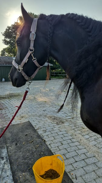Te koop: elegante Friesian merrie – vos, geboren in 2017 Te koop staat een prachtige Friesian merrie, geboren in 2017. Met haar indrukwekkende stokmaat van 1,60 m presenteert ze zich in een elegante voskleur. Ze is veelzijdig inzetbaar in de rijbaan en overtuigt door haar rustige en betrouwbare aard. Deze edele merrie is geschikt voor zowel ambitieuze recreatieruiters als voor de wedstrijdsport. Ze is zeer mensgericht, houdt van knuffelen en heeft simpelweg meer aandacht nodig dan ze momenteel krijgt. We plaatsen haar alleen in de allerbeste handen. Ze is geen beginnerspaard, omdat ze een ruiter nodig heeft die haar veiligheid biedt; anders wordt ze af en toe nerveus. Een goede operatieverzekering kan worden overgenomen zonder dat er wachttijden ontstaan. Passend toebehoren is bij te kopen, zoals een bijna nieuwe zadel met factuur, koetsen, enzovoort. Bij interesse of voor verdere vragen sta ik u graag te woord. Bezichtiging en proefritten zijn mogelijk op afspraak.
