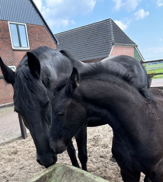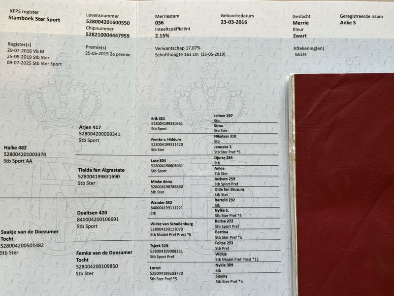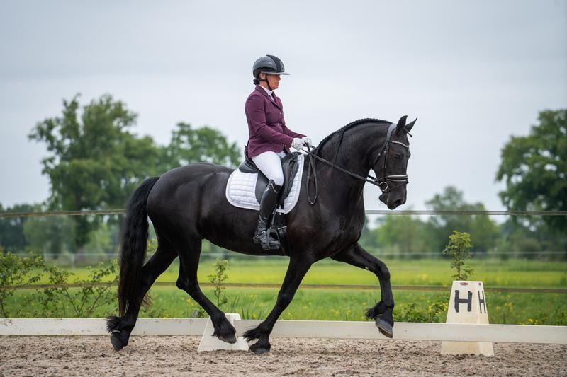 Anke is a talented 9-year-old Friesian star sport mare offered directly from the breeder. Haike 482 X Doaitsen 420 Gentle in handling, she can get a bit hot under the saddle but always remains honest and wants to work for you, and is very eager to learn, quickly picking up the work. She is currently competing at Z1 level with wins and is starting to work on the changes. She is also very suitable and interesting for breeding. She comes from line 36. She has full papers and is low in inbreeding and relatedness. Height: 1.65 m. She is free from dwarfism, chestnut factor, and hydrocephalus. The mare has already had a foal at her side before entering sports. She is a good and caring mother for her foal. Recently visited the dentist and has been clinically and radiologically approved. Re-examination is not a problem. K.K.