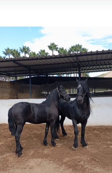 ¡Oportunidad de venta de un hermoso caballo Royal stallion Frisón! Se ofrece a la venta un magnífico semental Frisón, nacido en abril de 2024. De color negro intenso y con una alzada de 167 cm, este ejemplar destaca por su presencia imponente y su estructura completa. Ideal para quienes buscan un caballo noble de alta calidad, con excelentes características físicas y potencial para diversas disciplinas. Apto para competiciones y posibilidad de semental aprobado. No pierda la oportunidad de adquirir un semental con gran potencial y belleza. Para más información, no dude en contactarnos. Importante: el precio No es negociable.