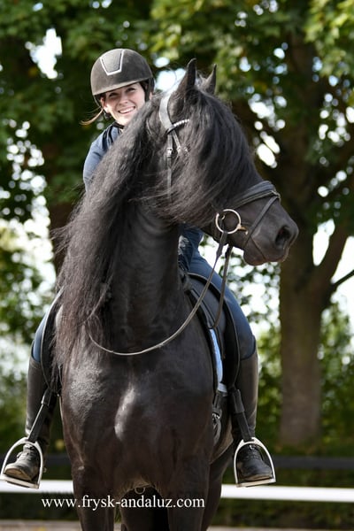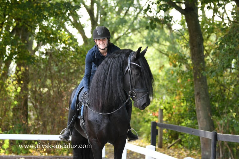 Toy-Boy Een sprookjespaard zeggen we wel eens gekscherend als we een paard zien die zo uit een film kan komen. En dit kunnen we zeker zeggen over Toy-Boy. Een zeer grote en grootramige hengst met veel statuur en enorm veel behang. Hierdoor is hij meer dan een eye-catcher. Toy-Boy is bij ons geboren uit onze Kroon+Sport merrie Victoria van Zomerstaete en ook bij ons opgegroeid. Het is een paard die goed kan bewegen en ook over een geweldig karakter beschikt. Toy-Boy is super vriendelijk, erg aanhankelijk en een echte knuffelbeer. Toy-Boy is goed aangereden onder het zadel en ook al mee geweest op vreemd terrein. Het is bij deze hengst opstappen en wegrijden. Toy-Boy staat goed aan de hulpen, heeft een zachte mond en wilt graag werken. Hij is makkelijk na te rijden en geeft een vertrouwd gevoel. Toy-Boy is een hengst met enorm veel expressie en we zouden het onwijs leuk vinden als hij in de wedstrijden uitgebracht gaat worden. Maar door zijn nuchtere karakter weten we zeker dat Toy-Boy ook blij gaat worden van een heerlijke buitenrit op zijn tijd. Bent u op zoek naar een grote en aparte verschijning? Een paard met een top karakter en geschikt voor de sport? Dan is Toy-Boy wellicht het juiste paard voor u! We sometimes jokingly refer to a horse as a fairy-tale horse when we see one that looks like it could have come straight out of a movie. And we can certainly say that about Toy-Boy. He is a very large, broad-framed stallion with great stature and enormous mane and tail. This makes him more than just an eye-catcher. Toy-Boy was born here from our Kroon+Sport mare Victoria van Zomerstaete and also grew up here. He is a horse that moves well and also has a great character. Toy-Boy is super friendly, very affectionate, and a real cuddly bear. Toy-Boy is well broken in under saddle and has also been out on unfamiliar terrain. With this stallion, it's just a matter of getting on and riding away. Toy-Boy responds well to aids, has a soft mouth, and loves to work. He is easy to ride and gives a feeling of confidence. Toy-Boy is a stallion with tremendous expression, and we would love to see him compete in competitions. But because of his down-to-earth character, we are sure that Toy-Boy will also enjoy a lovely outdoor ride from time to time. Are you looking for a large and special appearance? A horse with a great character and suitable for sport? Then Toy-Boy might be the right horse for you! https://www.frysk-andaluz.com/horse/toy-boy/