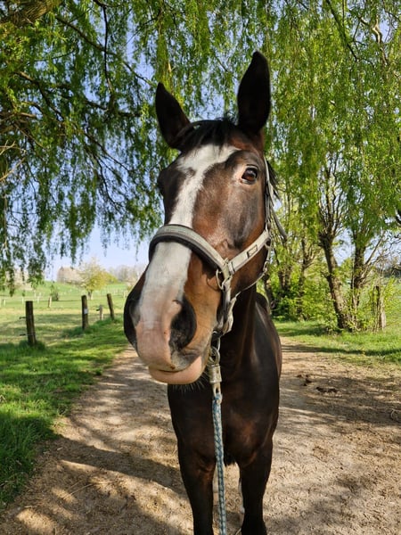 Video's: https://www.instagram.com/stories/highlights/17847481026432310/ Gralli is een ruin met veel potentieel en een geweldig karakter. Voor zijn eigenaar geeft hij echt alles – hij is zeer mensgericht, attent en makkelijk in de omgang. Hij wordt regelmatig door kinderen en jongeren gereden en toont zich daarbij absoluut betrouwbaar en eenvoudig in de omgang (op de video's rijdt een jonge ruiter die hem af en toe meereidt). Hij gaat ontspannen en zeker het bos in, of hij nu alleen is of in een groep. We wensen voor hem een ruiter die plezier haalt uit afwissend werk. Hij brengt veel plezier in de sport mee, heeft een goede sprongdrang zonder heet te worden. In de dressuur toont hij zich ook gemotiveerd en gevoelig. Hij is fijn te rijden, reageert goed op hulpen en werkt graag mee. In de omgang is Gralli ongedwongen, hij wordt regelmatig verzorgd door een osteopaat, tandarts en hoefsmid. We zoeken voor Gralli een plek waar hij verder gestimuleerd wordt, maar ook niet zomaar een paard in de stal is, maar een echt hartpaard voor zijn nieuwe eigenaar. Bij de AKU liet een röntgenfoto van het spronggewricht een lichte vernauwing zien, die volgens de dierenarts mogelijk wijst op een aanleg voor spasmen (spat). Of dit zich ooit ontwikkelt, kan natuurlijk niet worden voorspeld – hij zat net aan de grens van wat als onopvallend wordt beschouwd. Er is geen sprake van spat en hij heeft geen problemen met de gewrichten. Het klinische deel van het onderzoek verliep vlekkeloos en het paard vertoont geen klachten. Om reittourisme te voorkomen, rekenen wij €20 voor een proefrit; deze kosten worden bij aankoop uiteraard verrekend.
