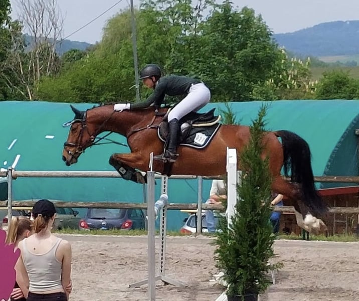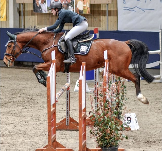 For sale: German riding horse – a bay gelding, born in 2015, standing at 16.1 hh. This versatile show jumper impresses with his solid basic training and reliable jumping technique. He is well-ridden and consistently motivated and careful in the arena. The gelding has a balanced temperament, is very people-oriented, but is not suitable for beginners. If interested, I am happy to provide further information and arrange a viewing.