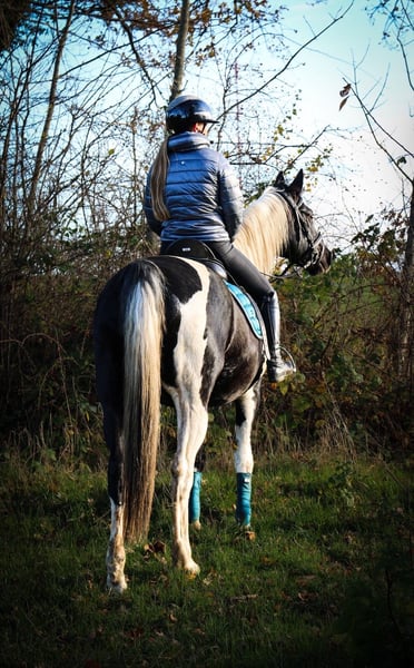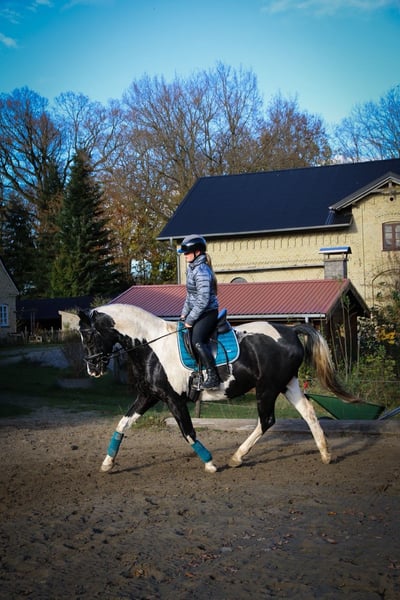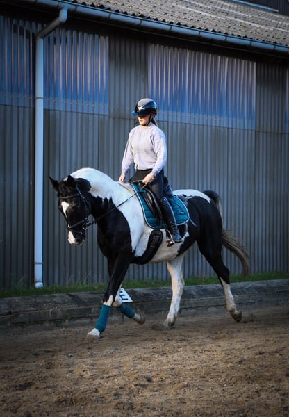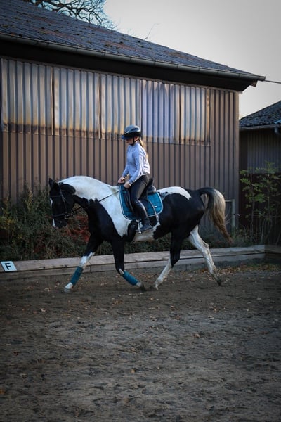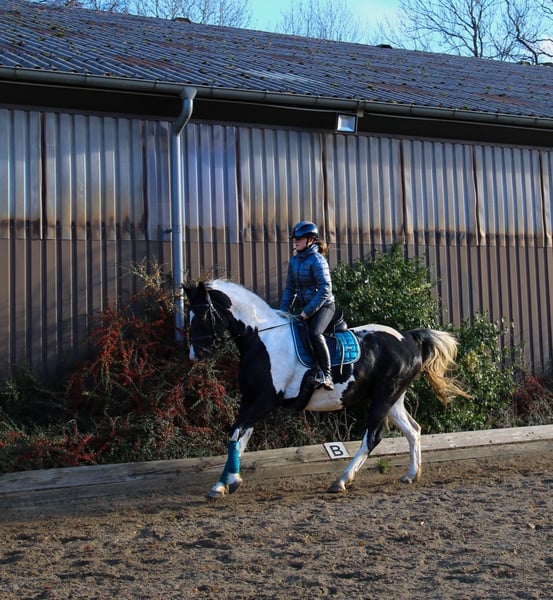 Dieser hübsche 14 Jährige Schecke sucht ein neues Zuhause. Als Yoshi zu uns kam zeigte er unmittelbar danach eine Lahmheit. Nach aufwendiger Diagnostik wurde eine alte Verletzung am Fesselträger festgestellt. Er stand nun gut 9 Monate nur auf der Koppel, um sich zu kurieren. Und so hatten wir erst jetzt Zeit, ihn richtig kennenzulernen. Yoshi freut sich sehr über die Zuwendung, ist gut zu reiten und mit angenehmen Go ausgestattet. Alleine in der Halle, Verlassen des Hofs, Trecker und sonstige Dinge um ihn herum bringen ihn nicht aus der Fassung. Wirklich ein toller Kumpel, der jedoch auch sensibel ist. Reiter die Klammern oder an den Zügeln ziehen gefallen ihm nicht, und auf zu viel Druck reagiert er mit Gegendruck. Dieser ausgesprochen hübsche Kerl sucht einen sicheren, feinfühligen Reiter . Unsere Reitschüler können das noch nicht leisten, wobei die Fortgeschrittenen viel Spaß haben ihn zu reiten.