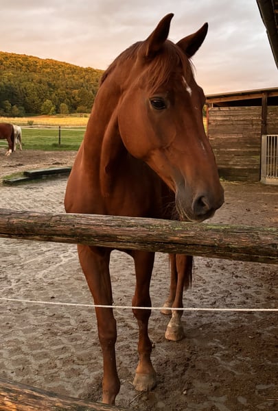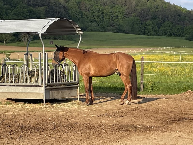 **Sales Advertisement: German Riding Horse** For sale is my beautiful gelding, born in 2011. He is an elegant chestnut with a height of 172 cm, suitable for leisure riding. He is a very people-oriented, affectionate horse that seeks closeness to his human and holds a mid-ranking position in the herd (initially lower, but he works his way up). In spring 2025, he was diagnosed with a lung condition, which we have since managed. He does not require medication, but it is essential for him to be kept in a well-ventilated stable (preferably an open stable). I am looking for a lovely home for him where he can play with his buddies, where he will be loved, and where he can go out on trails. He is definitely fully usable in this regard. Due to the longer break, he currently lacks fitness and muscle. If one wants to include groundwork, training must start again with the basics – this is much easier on a larger arena or in a hall than on a small, dusty surface, which causes him to roll and start coughing. He does not show these symptoms out on trails. Aside from his lungs, he is completely healthy and in very good condition. He is very alert and can react spookily in some situations, so he is not suitable for beginners. I have received the go-ahead from the veterinarian to start working with him again. He was never completely out of work but was only ridden out every third day for his comfort. Currently, my family situation is changing, which prevents me from giving him the attention he deserves. He stands by the fence every day wanting a job. He is barefoot but has also had shoes before. Home before price is important to me; I just want to ensure he finds a good home. If you are interested or have further questions, I look forward to your message!