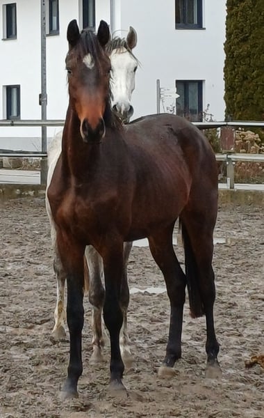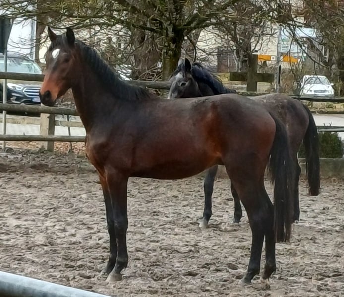Zum Verkauf steht ein vielversprechender deutscher Reitpferd-Wallach, geboren im Jahr 2023. Er überzeugt durch seine interessante Abstammung und sein vielversprechendes Exterieur. Mit einem Stockmaß von 167 cm bietet er die ideale Größe für den ambitionierten Dressursport. Seine Bewegungen sind vielversprechend, mit einer elastischen, taktklaren Grundgangart, die eine solide Basis für die weitere Ausbildung im Dressurviereck bildet. Er ist freundlich im Wesen, noch nicht angeritten. Ein Pferd mit großem Entwicklungspotenzial, das durch seine Qualität und sein angenehmes Wesen überzeugt.