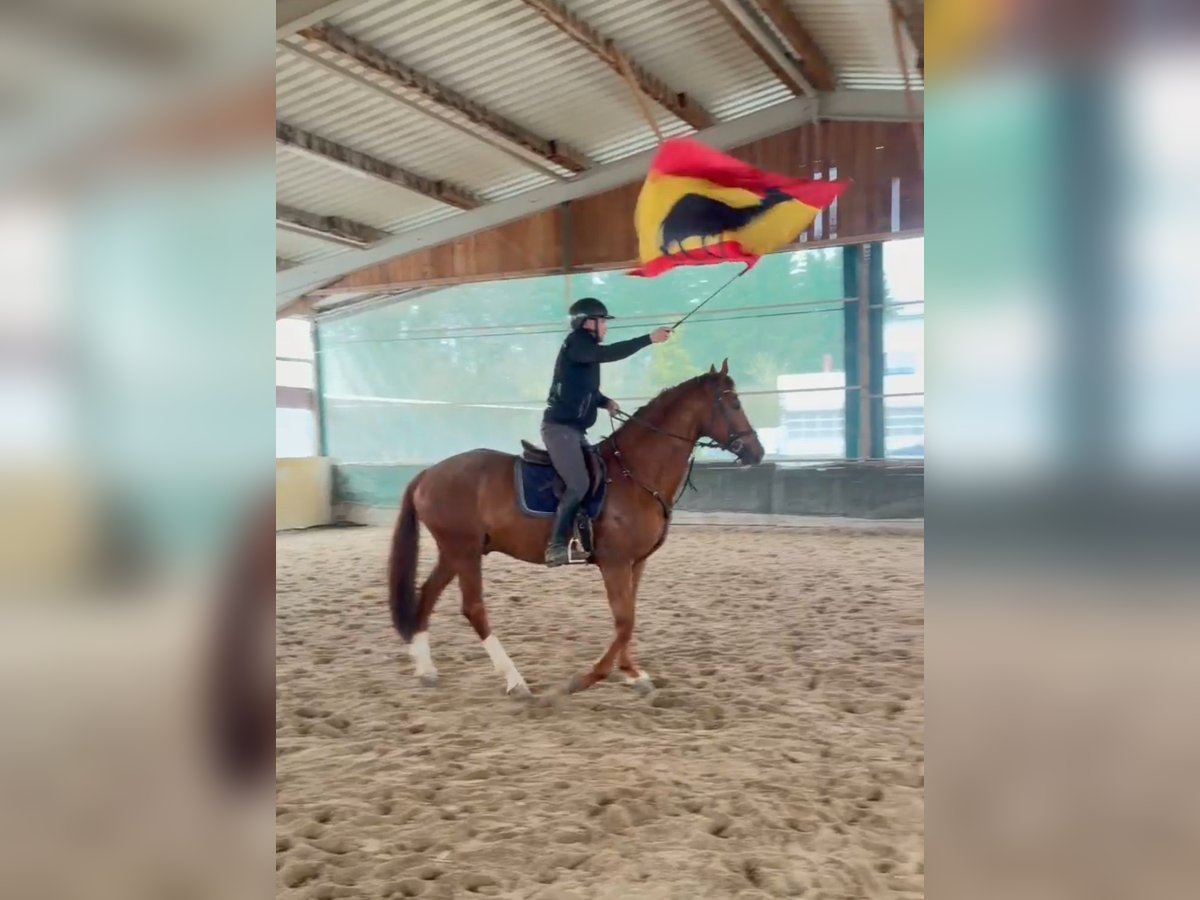 4 jähriger dunkelfuchs Wallach von Hickstead White × Euroking zu verkaufen. Er ist 167 cm groß. Er springt bereits einen kleinen Parcours, kennt Straßenverkehr, Hunde, etc. Sehr brav und unerschrocken. Er ist gesund und regelmäßig geimpft. Röntgenbilder können bei Interesse gemacht werden. Er ist direkt vom Züchter und ist zurzeit in Beritt. Probereiten ist gerne möglich.