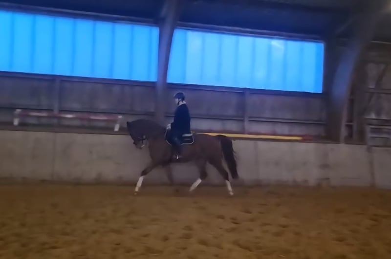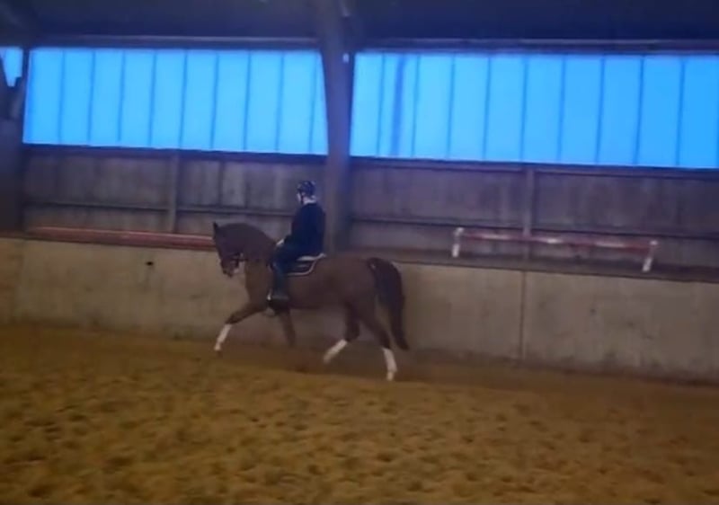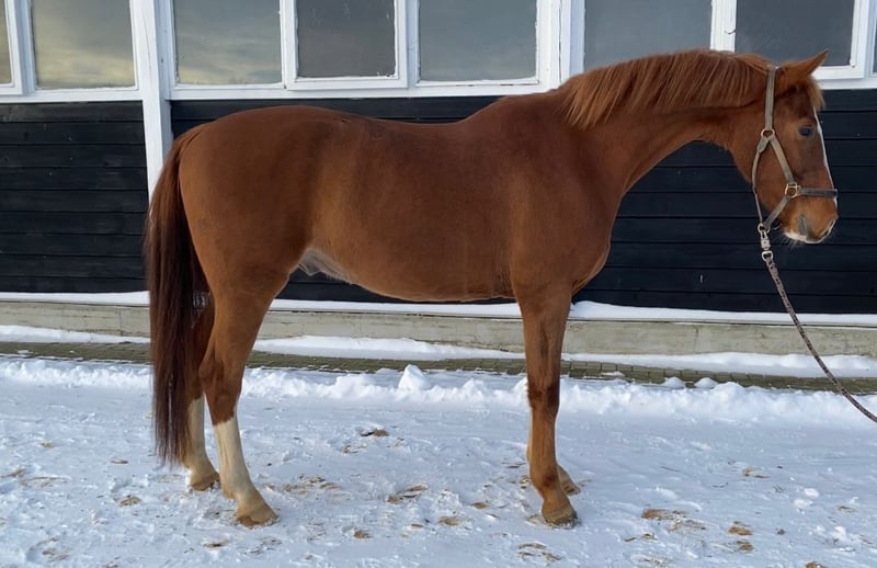 For sale is our sweet and very well-behaved 4.5-year-old chestnut gelding. Pedigree: Vilas Minded x Hutson x Olaf. This charming young gelding was born and raised with us and has enjoyed his training in a calm, horse-friendly environment. He is very people-oriented, friendly in handling, and always eager to please his rider. Vilas Minded x Hutson x Olaf has been under saddle since November and has proven to be well-behaved, eager to learn, and cooperative. He has a great attitude towards work and strives to make his person happy – a genuine young horse with heart ❤️. He grew up in a herd, is socially compatible, and well-mannered. Additionally, he is already accustomed to transport, which gives him confidence in new situations. A likable young gelding for anyone seeking an honest, well-bred horse with a pleasant character – ideal for leisure riding, further training, or as a long-term partner.