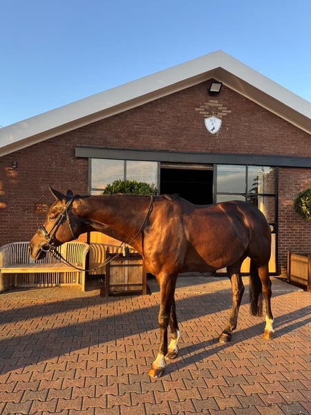 Due to health and time constraints, I unfortunately have to part with this beautiful gelding named Linstagram, nickname Loui. Loui was born in 2018 and has a height of 1.74 meters. He came into my possession at 2½ years old, was backed at 3½, and then spent another year grazing to grow. At ages four and five, he was extensively ridden in the field. At that time, he was also kept in a self-care open stall with another mare. Last year, we moved to a different stable (location in Eibergen, Netherlands, just behind Vreden), where he is kept in a box with year-round turnout. It was there that I began working with him in dressage. Currently, he is at Training Level, with lateral movements and flying changes initiated. I have taken him to training clinics, where he behaved exemplary. He has not yet been shown in competition, as I have no competitive ambitions. Loui was intended to be prepared for licensing at 2 years old; a total of 25 X-ray images were taken at the veterinary clinic in Telgte, all without findings. At 4, he sustained a minor superficial tendon injury in the pasture, which was monitored and treated by the clinic in Hochmoor. By 4½ years, he was able to be re-trained. He has never been lame. Currently, he has an equine health check-up without X-ray, also unremarkable. Loui is always alert and attentive, does not buck or rear. He loads well and is farrier-friendly. He also shows no behavioral issues such as head tossing, weaving, etc. I want to sell Loui to a family-oriented owner who does not see him merely as a sports tool. I wish for someone who can offer him a 5-star home, where he will receive plenty of cuddles and companionship from other horses, and where he will continue to be supported and developed. Reining videos can be sent upon request. Additionally, the equipment—including an Equiline saddle, bridle, saddle pads, blankets, etc.—can be included. Price is negotiable. Please feel free to contact me for further questions.
