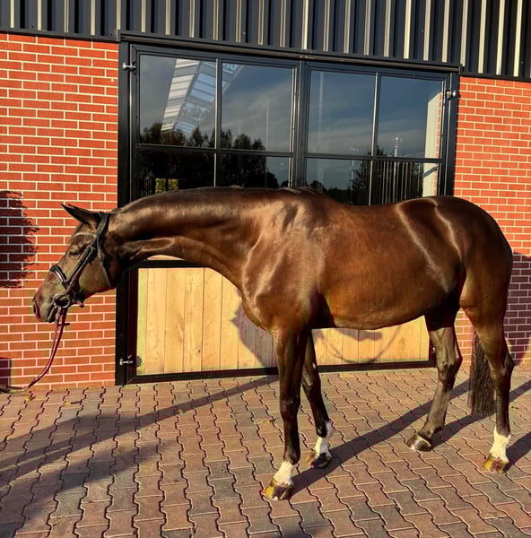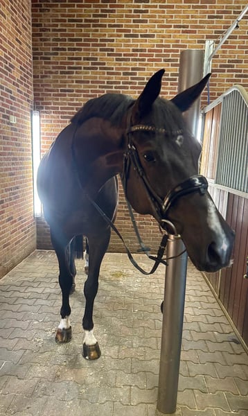 Aus gesundheitlichen sowie zeitlichen Gründen muss ich mich leider von diesem wunderschönen Wallach namens Linstagram, Spitzname Loui trennen. Loui ist im Jahr 2018 geboren und hat ein Stockmaß von 1,74m. 2 1/2 jährig ist er in meinen Besitz übergegangen, mit 3 1/2 Jahren wurde er von mir angeritten und bekam dann nochmal ein Jahr auf der Wiese zum wachsen. Vier und fünfjährig war er viel im Gelände. Außerdem stand er zu diesem Zeitpunkt mit einer anderen Stute in einem Selbstversorger Offenstall. Letztes Jahr sind wir in einen anderen Stall umgezogen (Standort des Pferdes in Eibergen, Niederlande kurz hinter Vreden), Boxenhaltung mit ganzjährigem Weidegang, dort bin ich angefangen ihn Dressurmäßig zu arbeiten. Aktuell befindet er sich auf Dressurpferde L Niveau, Traversalen sowie Wechsel begonnen. Auf Lehrgängen habe ich ihn mitgenommen, bei denen er sich vorbildlich benommen hat, auf Turnieren wurde er noch nicht vorgestellt da meinerseits keine Turnierambitionen bestehen. Aktuell liegt eine AKU vor, diese ist ohne Befund. Loui ist immer kopfklar, steigt und buckelt nicht. Er lässt sich gut verladen und ist schmiedefromm. Außerdem hat er keine Verhaltensstörungen wie koppen, Weben, usw. Ich möchte Loui an jemanden verkaufen mit Familienanschluss, er soll nicht als reines Sportgerät dienen. Ich wünsche mir jemanden der ihm ein 5* zu Hause bieten kann und wo es ihm an Kuscheleinheiten sowie anderen pferdigen Freunden an nichts fehlt und wo er weiter gefördert wird. Reitvideos können zugeschickt werden. Außerdem kann das Equipment, Equiline Sattel, Trense, Schabracken, Decken usw. übernommen werden. Platz vor Preis. Bei weiteren Fragen stehe ich Ihnen gerne zur Verfügung.