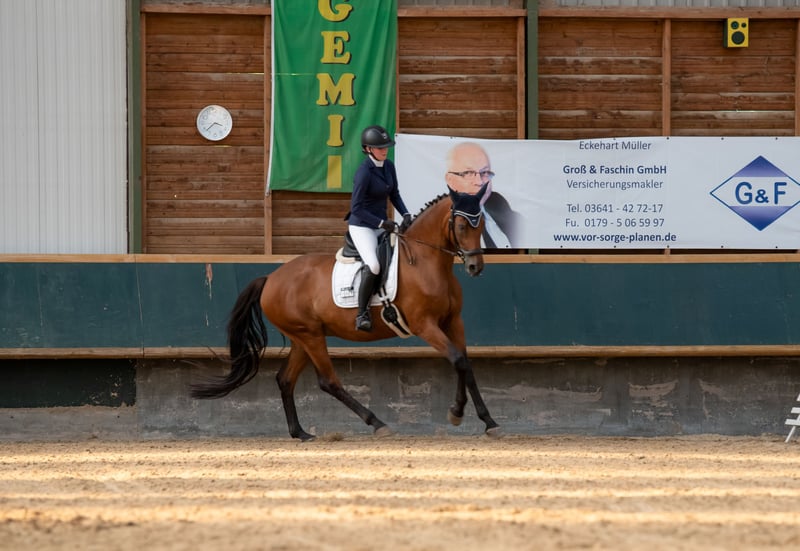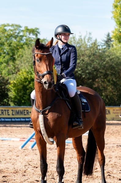 Zum Verkauf steht eine 10-jährige braune Stute mit einem Stockmaß von ca. 1,72 m. Sie ist eine großrahmige, elegante Stute mit angenehmem Charakter und sucht ein passendes neues Zuhause. Im Umgang ist sie brav und kennt die üblichen Dinge im Alltag. Sie ist sehr menschenbezogen und lässt sich gut händeln. Bei ihr wurde Kissing Spines Grad 2 diagnostiziert. Laut Tierarzt kann sie bei entsprechendem Muskelaufbau und angepasstem Training wieder normal geritten und auch gesprungen werden. (Je nach Interesse auch auf Turnier vorgestellt werden). Zusätzlich hat sie auf einem Auge eine Sehbeeinträchtigung, kommt damit im Alltag jedoch gut zurecht. (hat Sie seit ihrem 2. Lebensjahr). Sie wird daher unter Wert und vorzugsweise an jemanden abgegeben, der Erfahrung mit Muskelaufbau und entsprechendem Training hat. Kein Notverkauf Bei ernsthaftem Interesse gerne weitere Infos, Bilder oder Videos per Nachricht.