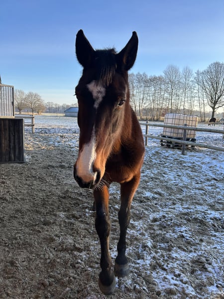 Hallo, Ich verkaufe nach langer Überlegung meine tolle Zuchtstute „Bambi“ . Sie ist 15 Jahre alt aus der Anpaarung Balou Du Rouet x Raphael x Haemon xx. Bambi ist seit ca. 6 Jahren in meinem Besitz und war nie ernsthaft krank. Auch wenn sie nicht geritten wurde zeigt sie sich durch und durch athletisch, ob mit oder ohne Fohlen. Sie bringt mit ihrer alten Springabstammung Züchterherzen zum höher schlagen. Das Fohlen von 06.2025 befindet sich noch in meinem Besitz und entwickelt sich zu einem hervorragenden Hengstanwärter. Sie hat bereits einen gekörten Hengst und eine sporterfolgreiche Stute als Nachkommen. Sie ist trotz ihrer stolzen Größe von 175cm sehr umgänglich und wird aktuell von einem 12 jährigen Mädchen ganz selbstständig rausgeholt und geputzt. Sie kennt das Longieren mit Gurt und Trense. Keine Unarten oder Probleme im Umgang. Ich suche für sie einen Platz mit Familienanschluss, mit Tüddeln , spazieren und zur Hobbyzucht. Bitte keine Händler oder klassischen Zuchtstall. Ich verkaufe sie nicht als Reitpferd. Aktuell ist sie nicht belegt, das kann gerne hier in der gewohnten Umgebung übernommen werden bei Kostenübernahme. Alles weitere dann bitte am Telefon oder persönlich. 015737020890 Platz vor Preis ! Also macht mir bei Interesse einfach ein Angebot