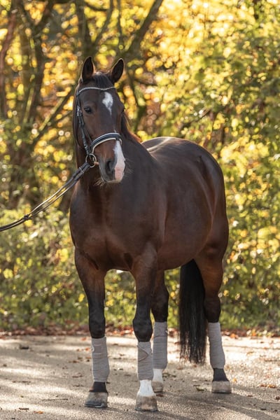 Unfortunately, due to lack of time, I have to part ways with my 16-year-old mare (approx. 160 cm). She is trained up to dressage class L and impresses with her very loving, sensitive, and honest nature. In daily handling, she is well-behaved, people-oriented, and very easy to ride. She remains calm and reliable even in the terrain, always keeping a clear head. A past injury from 2025 (a coffin bone fracture) has fully healed. Currently, she is in a rebuilding phase, showing motivation and willingness to work. At the moment, she is being prepared from the ground and has not been ridden since her injury. X-rays are available and can be viewed without any problem. I am looking for a compassionate and responsible home that will appreciate her sensitive nature and continue to support her development. Accessories, if desired, can be purchased at an additional cost. Placement before price – she will only be entrusted to the best hands!