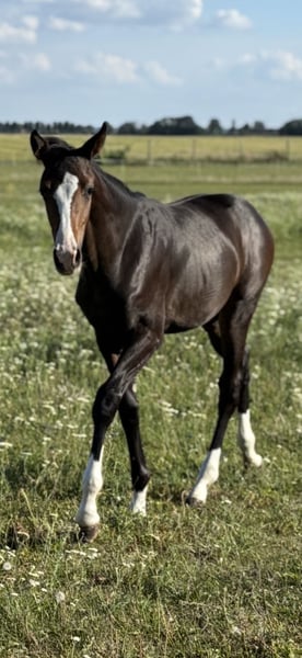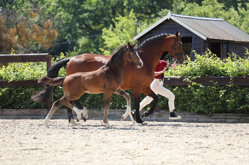 I am offering my beautiful filly for sale, who descends from SKY, the current national champion of the 7-year-old dressage horses. Since I have decided to keep the dam, I am looking for a new, 5-star home for her from the end of October. **Damline**: Her great-great-grandmother is the renowned Puppenfee, who has produced stallions such as San Amour I and San Amour II, as well as several premium mares and granddaughters. With this impressive pedigree and her charming personality, she has the potential for a successful career in dressage. I look forward to finding a loving and nurturing home for her. Please feel free to contact me if you are interested or have any questions.