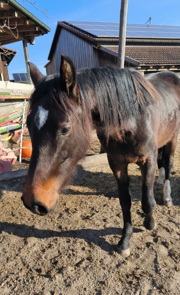 This lovely mare, born in 2023, is looking for a kind home. As a foal, she had a pasture accident that resulted in a healed injury. I could easily see her as a leisure horse, but she would also be suitable for breeding. I believe she might also be suitable for small-scale competition, but I can't say much about that since she is only two years old. She is familiar with the farrier, has been dewormed, and vaccinated. She was bred by me and is currently grazing on a large pasture with a retiree. Please contact me if you are genuinely interested.