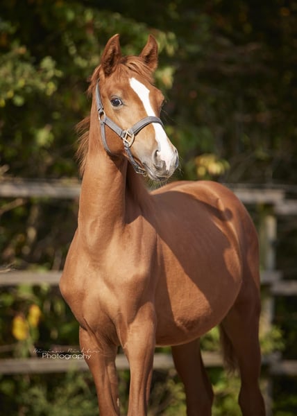 Prawie dwuletnia klacz po HJ Unomomento Ta piękna młoda klacz będzie miała około 16,1 hh. Już teraz wykazuje przyjazny, ciekawski i odważny charakter. ✅ Opanowała podstawy młodego konia ✅ Bezproblemowo do czyszczenia, prowadzenia i zakładania ogłowia ✅ Spokojna i nieustraszona podczas wizyty u kowala Rodowód: Hj Unomomento x Casino Berlin Cena: 2.900 € W razie zainteresowania chętnie prosimy o telefon!
