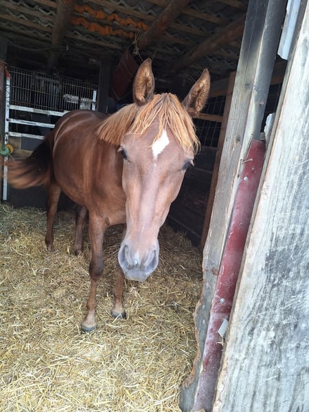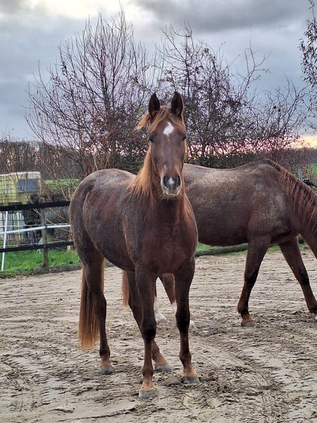 Calinka is a cuddly, affectionate two-year-old mare. She has been with us since birth and lives in a paddock with pasture access (herd environment). She is well-behaved with the veterinarian (regularly vaccinated and dewormed) and the farrier, but she is not yet familiar with loading. She is very curious and friendly towards people, eager to learn, and enjoys being occupied. We estimate that she will likely reach a height of 1.60m. Please feel free to contact us if you have any questions. She is only available to good hands due to time constraints. We are happy to consider price proposals.