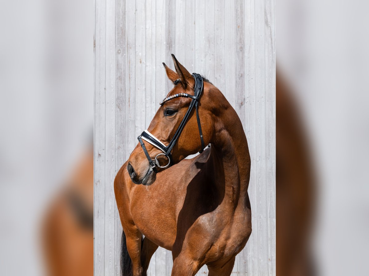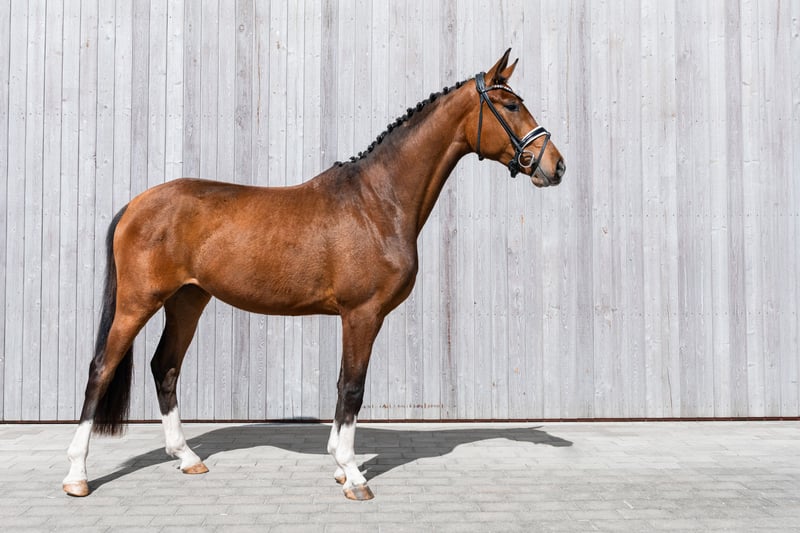 This strikingly elastic 3-year-old mare is seeking an ideal home to continue her breeding career! Her dam was multiple winner at Grand Prix level. The mare has been lunged, is familiar with daily stable routines, and shows a strong willingness to learn. Current X-rays are available. Additional videos can be requested.