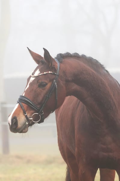 Zazou ist ein interessantes Nachwuchspferd für Sport und Zucht. Diese modern aufgemachte Stute präsentiert sich ausdrucksstark mit drei überzeugenden Grundgangarten. Besonders hervorzuheben ist der sehr raumgreifende Schritt mit viel Übertritt. Der Galopp ist bergauf angelegt und von guter Qualität, während der Trab durch Takt und Gleichmaß besticht. Zazou wurde schonend an die Arbeit herangeführt und zeigt sich hier mit sehr guter Arbeitseinstellung und gibt dem Reiter stets ein gutes Gefühl. Sie benötigt noch etwas Zeit zur Entwicklung, bringt jedoch beste Voraussetzungen mit, ihr Potenzial voll zu entfalten. Sie überzeugt als sensibles, ehrliches Nachwuchspferd mit positivem Go und einwandfreiem Interieur. Besonders interessant ist auch ihre Abstammung. Zazou ist die Halbschwester des erfolgreichen Deckhengstes Baccardi, der als Vierjähriger Bundeschampion wurde sowie fünf- und sechsjährig Finalist beim Bundeschampionat und bei der Weltmeisterschaft war und inzwischen bis zur schweren Klasse erfolgreich ist. Pk: 20-25