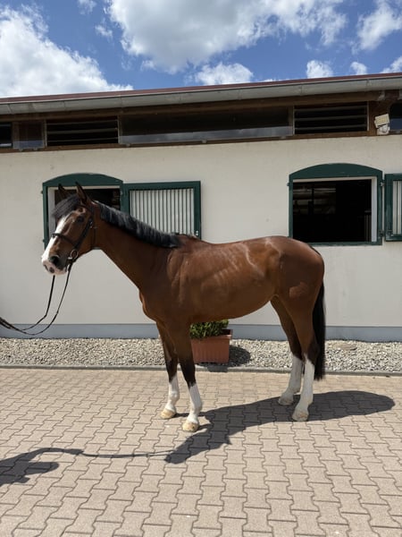 **Verkaufsanzeige: Deutsches Reitpferd** Zum Verkauf steht eine talentierte Stute, geboren im Jahr 2020. Sie ist ein wunderschöner Brauner mit einem Stockmaß von 173 cm. Diese Stute zeigt großes Potenzial im Springen und eignet sich sowohl für erfahrene Reiter als auch für ambitionierte Nachwuchsreiter, die ihre Fähigkeiten weiterentwickeln möchten. Sie ist brav im Umgang, gut ausgebildet und hat einen freundlichen Charakter. Bei Interesse oder für weitere Informationen stehe ich gerne zur Verfügung. Wir freuen uns auf Ihre Nachricht!