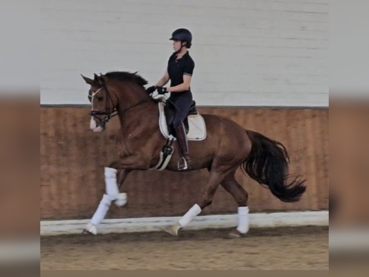 For sale is an impressive, large-framed dressage mare that combines quality, character, and presence in a remarkable way. Last year, she was presented twice in young horse classes and received very good scores. Her three excellent basic gaits, natural uphill tendency, high elasticity, and elegant self-carriage make her a promising candidate for advanced dressage. Her wonderful temperament is especially noteworthy: clear-minded, affectionate, eager to learn, and always motivated. She works with joy and instills a confident, positive feeling in her rider. A mare with potential for the grand Prix ring – and at the same time a partner with heart. Price plus applicable VAT.