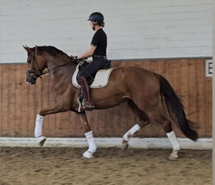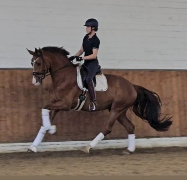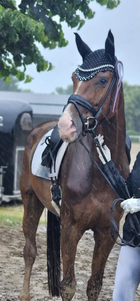 Zum Verkauf steht eine beeindruckende, großrahmige Dressurstute, die Qualität, Charakter und Ausstrahlung auf besondere Weise vereint. Sie wurde im vergangenen Jahr zweimal in Reitpferdeprüfungen vorgestellt und mit sehr guten Noten bewertet. Drei sehr gute Grundgangarten, natürliche Bergauftendenz, viel Elastizität und eine schöne Selbsthaltung machen sie zu einer vielversprechenden Kandidatin für den gehobenen Dressursport. Besonders hervorzuheben ist ihr wunderbarer Charakter: klar im Kopf, menschenbezogen, lernwillig und stets motiviert. Sie arbeitet mit Freude und gibt ihrem Reiter ein sicheres, positives Gefühl. Eine Stute mit Perspektive für das große Viereck – und gleichzeitig eine Partnerin mit Herz. Preis zzgl. gesetzlicher MwSt.