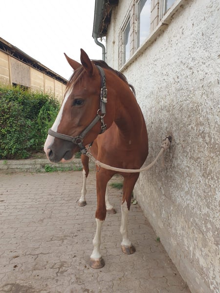 With a heavy heart, I am seeking a loving and responsible forever home for my mare Cäthe. Cäthe is 5 years old and a very friendly, human-oriented mare with a pleasant temperament. Due to an injury at the origin of her suspensory ligament, she is no longer suitable for riding and is therefore being rehomed as a companion horse. She would also be well-suited for breeding purposes. Currently, she lives in a paddock with a small herd of mares, and during the summer, she spends her days on pasture. She is accustomed to stall life, handles daily handling well, and enjoys human company as much as the company of other horses. Cäthe is not meant to become a "trophy horse" but deserves a permanent place where she is loved, cared for, and appreciated. Ideally, her new owner would be open to occasional visits. The well-being of the horse comes first, not the price. If genuinely interested, I am happy to provide more information.