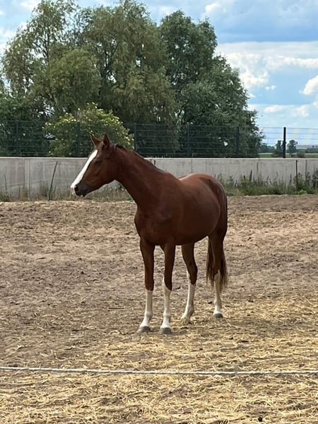 Schweren Herzens suche ich für meine Stute Cäthe ein liebevolles und verantwortungsbewusstes Zuhause auf Lebenszeit. Cäthe ist 5 Jahre alt und eine sehr freundliche, menschenbezogene Stute mit einem angenehmen Wesen. Aufgrund einer Verletzung am Fesselträgerursprung ist sie nicht mehr für den Reitsport geeignet und wird daher als Beisteller abgegeben. Für die Zucht wäre Cäthe sicherlich auch gut geeignet. Zurzeit lebt sie im Offenstall in einer kleinen Stutenherde, stand im Sommer tagsüber auch auf der Weide. Sie kennt den Umgang im Stall, ist brav im täglichen Handling und genießt die Nähe zu Menschen ebenso wie die Gesellschaft anderer Pferde. Cäthe soll kein „Wanderpokal“ werden, sondern einen Platz für immer bekommen, an dem sie geliebt, umsorgt und wertgeschätzt wird. Gerne vielleicht mit der Möglichkeit, sie hin und wieder mal besuchen zu können. Platz vor Preis, bei ernsthafter Interesse gerne mehr Infos