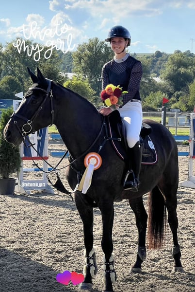 Ein Pferd mit super Einstellung im Parcours. Immer gewillt alles richtig zu machen. Im Umgang ein absoluter Traum. Sie geht bei uns viel ins Gelände und in der Gruppe auf Koppel. Sie ist sehr anpassungsfähig im Parcours, gibt immer ein unheimlich tolles Gefühl am Sprung und ist sehr vorsichtig. Sicher ein Pferd was seinen Weg in die schwere Klasse finden wird. Weitere Information und Details gern am Telefon oder per WhatsApp. Anfragen bitte ausschließlich über 0151/72235503 an Lara Mösezahl (Preis steigt bei weiterer Ausbildung/Erfolgen)