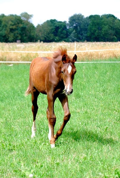 Cello C (geb. 11.04.2025), ein langbeiniges, bildschönes, korrektes, sich auch sehr gut und leichtfüßig bewegendes, pfiffiges Dunkelfuchshengstfohlen (Fohlenprämie!) - Endmaß ca. 169 cm - mit 3 weißen Söckchen und schöner Zeichnung im Gesicht. Sein Vater ist der im Springsport hocherfolgreiche Rapphengst Central Park (Casall x Contender, Station Maas-Hell), der in seinem Pedigree top Springer vereint und mütterlicherseits auf die gekörten Vollbrüder Chello I-III zurückgeht. Mutter dieses Nachwuchskrachers ist unsere typvolle, doppelt veranlagte Prämienstute Sissy C (Samenco K x Camaro, Lehar, Ladykiller xx). Sie brachte mit Ludwig´s As bereits einen bunten Sohn, der sich 5-jährig unter den 20 besten Springpferden in Belgien behaupten konnte und dort begeistert weiter gefördert wird. Cello C ist charakterlich cool und aufgeschlossen, lernt super schnell, zeigt jetzt schon, daß er springen will und kann, wegen seines interessanten Blutanschlusses auch für die Vielseitigkeit und die Zucht interessant. Ein Traumtyp und künftiger Sport- oder Freizeitpartner mit allerbesten Anlagen. Nur in liebevolle, gern fördernde Hände. Mehr Infos auf www.sportschecken.de oder unter 0177/8140272. Absetzen ist ab sofort möglich, derzeit genießt er aber noch seine gemeinsame Zeit mit Mama.