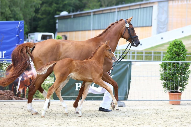 Bewegingssterke kleurrijke hengst kandidaat. Reservekampioen bij het veulenkampioenschap in Moritzburg. Volgens de beoordeling van de jury is het een typvol hengstveulen met een sportieve uitstraling en een maskuline typologie, met een goede driehoek en een zeer goede fundering. Vooral de bewegingsgang in de galop wordt gekenmerkt door veel kracht en oprichting. Geb. 05/24 Informatie over de moederlijn: Afstammelingen uit de directe moederlijn zijn internationaal succesvol tot 1.50m in de springsport. De zus van de moeder heeft de winnares van het 18e Saksisch-Thüringse vrijspringen kampioenschap in 2021 voortgebracht.