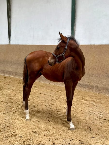 Dieses schicke Hengstfohlen aus dem Jahr 2025 besticht nicht nur durch seine hervorragende dressurbezogene Abstammung, sondern auch durch sein freundliches und umgängliches Wesen. Beide Elternlinien verfügen über bestes Dressurblut, sodass dem Nachwuchs exzellente sportliche Perspektiven vorausgesagt werden können. Seine raumausfüllenden Bewegungen, harmonische Proportionen und ein einwandfreies Exterieur lassen ihr großes Potenzial deutlich erkennen. Das Fohlen wird Ende 2025 abgesetzt und eine weitere Aufzucht auf der Anlage ist nach Absprache möglich. Dieses Fohlen stellt eine hervorragende Grundlage für die spätere Förderung im Dressursport dar. Aufgrund einer Bestandsverkleinerung wird er unter Wert abgegeben – eine seltene Chance, einen vielversprechenden Nachwuchs zu erwerben.