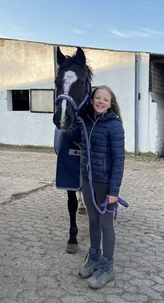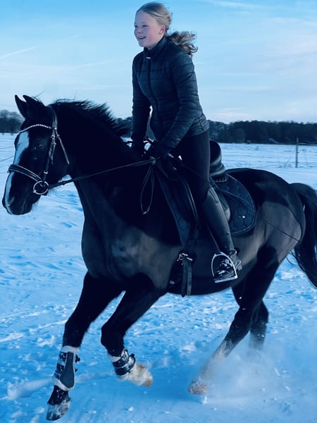 For sale is our gentle 10-year-old gelding, Dark Dancer. He is affectionately called Dornik, after his sire and grandsire. He stands approximately 1.48 meters tall. We purchased Dornik about a year and a half ago for our then nearly 11-year-old daughter. However, she has not progressed enough in her riding to fully do him justice, and as I do not come from a riding background, we are looking for a new home for him. Dornik is very sweet and adaptable: riding backwards, with a halter, without a saddle, during the off-season, with small children – nothing is a problem for him. He remains unfazed by noise and chaos: we have participated in two large Christmas dressage tests with lots of spectators on the yard, training away from home, a trip to the nearby heath, and riding badges. He is familiar with dogs, tractors, airplanes, etc. His previous owner has experience in competitions, and we are confident he can still perform at that level without issues. He is easy to load and farrier-friendly. We keep him barefoot, although he had front shoes with his previous owner. He lives in a paddock with a mixed herd, but he was also previously accustomed to a box stall. Dornik particularly enjoys jumping: even with rider errors, he has never refused and reliably saves the situation. He is confident both alone and in a group in the terrain. We could imagine a child who is more advanced in riding than our daughter, a mother-child pair, or an adult who loves ponies! We had him undergo a health check-up (AKU) with no findings, and the X-ray images are available. He is vaccinated and healthy. He received annual physiotherapy, and his teeth have just been floated. Please contact us preferably via WhatsApp, as I am not easily reachable by phone during working hours.