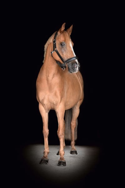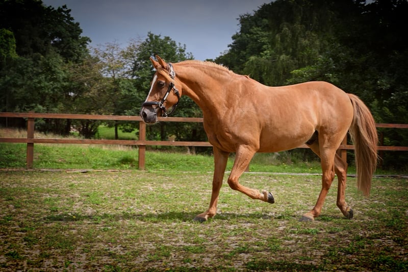 German Riding Pony Description: We offer a beautiful 10-year-old gelding for sale. This chestnut with a light mane is a true heartbreaker and a real eye-catcher. With a height of 1.45 m, he is ideal for riders looking for an easy-to-ride and sensitive horse. Character and Abilities: Our gelding has already won A-level dressage at competitions and has been placed multiple times. He is characterized by his good basic gaits and his reliable response to aids. In groundwork, following the principles of classical riding, he masters lessons such as shoulder-in and haunches-in. In a group, he tends to be low in the hierarchy and is occasionally bullied, which is why we prefer a homogeneous group setting for him. Year-round turnout in an open stable with changing horses is not suitable for him. For box housing, we would like him to have year-round paddock or pasture access. Health and Care: His teeth have been regularly checked. He is shod in front and barefoot behind. He requires regular work and is always motivated to collaborate with his human. Special Features: • Easy to ride and sensitive • Good basic gaits • Experienced in groundwork • Eye-catcher Pedigree: RM Dreamteam Father: HET Golden Dream NRW Mother's Father: Noir de Luxe Price: €12,000 Contact: For inquiries and further information, please ONLY call. Phone: 0177-8061397 No urgent sale – we are looking for the perfect new owner for our heartbreaker.