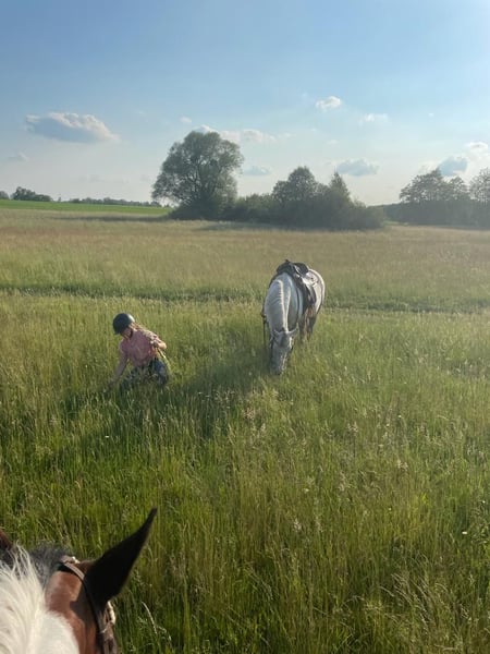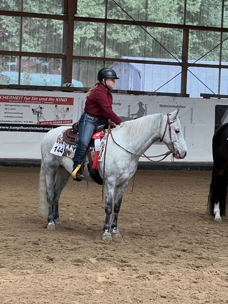 Unser 12 jähriger Bubi sucht neuen Möhrchengeber mit Herz ♥️ Bubi kam 2020, bisher englisch geritten, zu uns. Seither wird er von meiner, damals 9 jährigen, Tochter und mir in Western geritten. Von 2020 - 2024 ging er regelmäßig in Beritt. Bubi lebt bisher in einem Offenstall in einer Wallachherde. Im Sommer benötigt er ein schattiges Plätzchen, da er zu Sonnenbrand im Gesicht neigt. Ob auf dem Platz, im Gelände oder bei der Bodenarbeit hatte meine Tochter viel Spaß mit ihm. Natürlich kommt auch mal der sture Ponyschädel durch, dabei ist er aber nie böse und gibt Acht auf seinen kleinen Menschen. Er ist die Art Pony, bei der man sich als Mama entspannt zurücklehnen kann. Auch auf Tunieren konnten die beiden glänzen. Wir wünschen uns für ihn ein Kinderherz, welches er im Sturm erobern kann Ein Probereiten ist natürlich möglich, gegen eine Pauschale von 30€. Diese wird bei Kauf vom Preis selbstverständlich abgezogen. Auf Anfrage senden wir gern Videos. * Komplettes Equipment kann mit erworben werden (2.500 €) * Krankenversicherung kann übernommen werden * Equidenpass vorhanden * Barhuf * Geimpft / Entwurmt * gepflegte Zähne * Schmiede- und Verladefromm * Kinder-& Anfängergeeignet * Stockmaß 143 cm Kein Notverkauf - Platz vor Preis