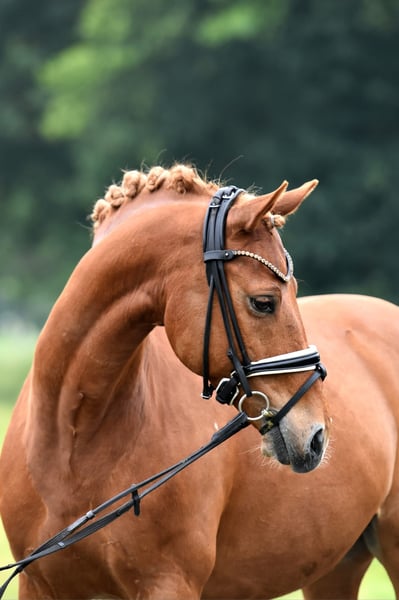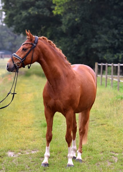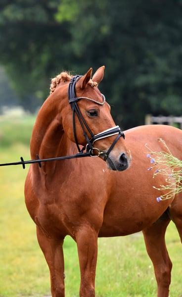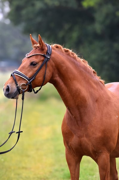 "Olli," our little heartbreaker! This 13-year-old son of Olivier K is being offered only due to his owner's health issues, with a heavy heart. The elegant chestnut is highly placed in competitions, has won L dressage tests, and is even placed in M dressage. He offers excellent lesson reliability, a good seat, and rideability. Olli is not spooky and enjoys hacking out or doing small jumps. He is easy to handle; the farrier, loading, and other routines are no problem. An immediate start in FEI competitions is possible! A comprehensive veterinary and radiological health check, including X-rays, is available. Suitable for children with guidance (e.g., riding competitions), and riding with draw reins is no issue. Come see him and fall in love!