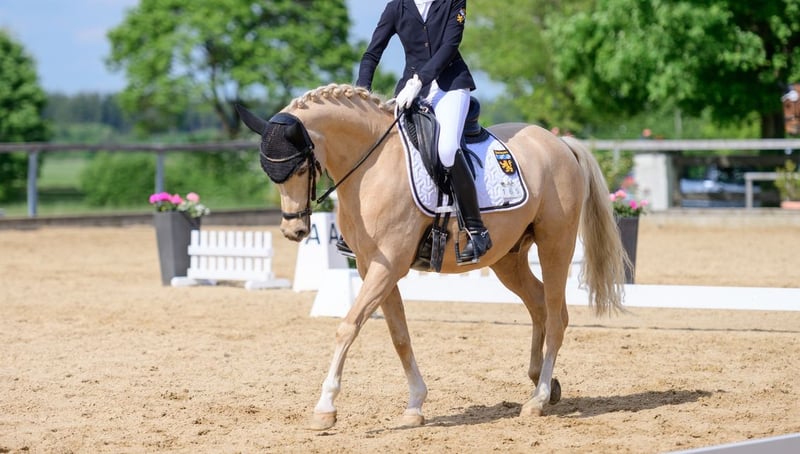 For sale is a 13-year-old Palomino gelding with an FEI lifetime measurement of 146 cm. This exceptional pony impresses not only with its elegant appearance but also with its sporting achievements. He has competed successfully from class E up to FEI level and has even placed in FEI competitions. A true schoolmaster and success pony that provides his rider with confidence and enjoyment in the sport. He features excellent basic gaits, is well-ridden, eager to perform, and has extensive experience in competition environments. He is ideally suited for ambitious riders. There is a minor cosmetic flaw, but it does not affect him in any way—neither health-wise nor performance-wise. An entirely honest, experienced, and reliable pony that still has many successes ahead of him.