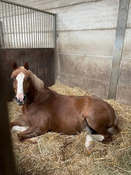 We are selling our German Riding Pony gelding (born 13.05.2010, 1.42 m, chestnut). He is a real eye-catcher with solid training: • Confident in dressage at level A, also completed show jumping at level A* • Competition experience until 2021 • Ridden mainly for leisure and in riding lessons since 2021 • Regularly in training, well-groomed, and healthy Character: He needs some time to get used to his person but quickly builds trust. When riding, he is somewhat forward-going but can be motivated and can move quickly and energetically. Ideal for riders looking for an honest, safe pony that doesn't "explode" right away. Not a children's pony. We recommend him for teenagers from 12 years old. Area of use: • Leisure • Dressage lessons • Trail riding in the woods/terrain Lucky is regularly seen by the farrier (no shoes) and all his vaccinations are up to date. Price: Negotiable €7,900 It is important to us that he goes to good hands where he will be further developed and bring joy.