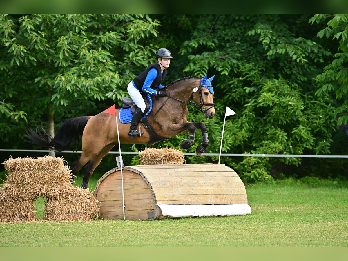 We are selling our 15-year-old pony gelding due to a transition to a larger horse. He is an ideal partner for those starting in competitive riding and a truly reliable pony for young riders. His heart clearly lies in eventing, where he has repeatedly proven his skills. He has participated three times in the Gold Ribbon competition, successfully completed an eventing class A, and has also placed in an indoor arena at L-level. In show jumping, he is regularly placed up to A* level, often victorious, and impresses with his style—frequently earning scores around 8, and sometimes even 9. Additionally, he has won several Pony Cups. My daughter became Rheinhessen Champion with him during her very first competition season, which highlights his qualities as a dependable and educational young horse. Fun is definitely not neglected with him: he loves hacking out, is well-behaved and reliable outdoors, and can even be ridden and jumped without a saddle. This makes him not only successful in sport but also a versatile and cheerful partner. In daily handling, he is friendly, well-mannered, and uncomplicated. He is accustomed to stable life, easy to ride, and provides his rider with confidence and trust. Regular farrier and veterinary care are of course provided. We are not looking for a purely sport-focused home for him, but rather a place where he can be more than just a competition partner—somewhere he can help a child during their first steps in eventing. Finally, regarding his size: he has a pony passport but is slightly taller than the classic pony height, making him very suitable for older children or teenagers. Further information and price details are available upon request.