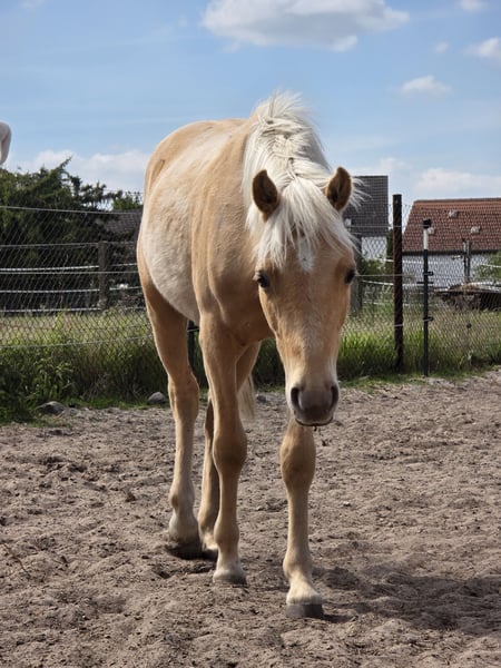 Deutsches Reitpony in der beliebten Farbe Palomino. "Checker Charly" ist ein ultrasüßes Kerlchen ... mit tollem Gebäude und bestem Interieur. Er kennt bereits den Umgang mit Kindern und ist allzeit freundlich, nett und nicht aufdringlich. Völlig unerschrocken und immer korrekt im Handling geht er sogar mit kleinen Kindern spazieren. Er liebt es zu kuscheln und freut sich über jede Aufmerksamkeit! Bei der Fohlenschau wurde er prämiert. Seine Mami ist eine zauberhafte Kinderreitponystute die eine absolute Lebensversicherung ist. Sein Papa ist der Cremello Hengst Söl'rings Cuvée. Ebenfalls mit bestem Interieur ausgestattet bringt dieser auch Sportlichkeit mit sich. Checker Charly zeigt bereits jetzt hervorragende Anlagen und Bewegungen, die ihn zu einem vielseitigen und vielversprechenden Kandidaten für allerlei Sparten der Reiterei macht. Er ist bereits gelegt, natürlich geimpft und mehrfach entwurmt, sowie regelmäßig dem Schmied vorgestellt. Endmaß schätzen wir auf 135-145cm Gemessen am 10.12.2025 (Alter 1 Jahr und 8 Monate) = 127cm Auf Wunsch kann er zur weiteren Aufzucht noch bei uns stehen bleiben.