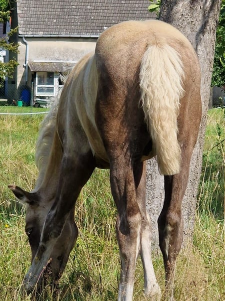 'COPILOT' to bardzo typowy i obiecujący Niemiecki Kuc w formacie XXL. Z doskonałym charakterem i bardzo dobrą mechaniką chodu, przed nim otwierają się wszystkie drzwi! Był zwycięzcą pokazu źrebiąt w Reichenwalde oraz uczestnikiem championatu źrebiąt w Neustadt Dosse. Na naszym gospodarstwie mamy również jego pełną siostrę. W wieku 4 lat wygrała test wydolności klaczy w Neustadt Dosse i w tym roku zdobyła swoją nagrodę państwową. Zachwyca najlepszą jezdnością i chęcią do pracy! Rodzice to wszechstronne konie (uzdolnione zarówno w ujeżdżeniu, jak i skokach oraz w konkurencji wszechstronnej). Życzymy sobie wspaniałego domu dla tej gwiazdy przyszłości! Jest już wykastrowany, oczywiście zaszczepiony i wielokrotnie odrobaczony, a także regularnie pokazywany kowalowi. Oczekiwany wzrost szacujemy na 155-160 cm. Może pozostać tutaj na dalszą hodowlę.