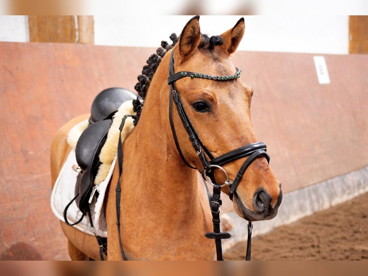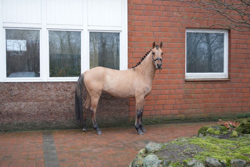 Sometimes, a pony comes along that you don’t just see – you immediately fall in love with it. That’s exactly the case here. This recently backed young pony impresses with an absolutely unique and perfect temperament – both in daily handling and under saddle. He is well-behaved, attentive, and uncomplicated, free of any vices, and always motivated and eager to learn. His remarkable mental clarity stands out: even now, he is ridden by children and consistently provides a sense of security and confidence. His breeding-based dressage qualities are above average. With elastic, rhythmically correct movements, a natural uphill tendency, and a beautiful self-carriage, he possesses everything needed for advanced pony sport with children and young riders. His pedigree leaves no wishes unfulfilled for ambitious goals and highlights his sporting potential. But he is not only impressive in dressage – in free jumping, he demonstrates his second passion with great commitment, awareness, and technique. He makes very powerful, well-placed jumps and always appears attentive and ambitious. This overall package is rounded off by his strikingly beautiful face with soft features and that special “love-at-first-sight” look that captures everyone immediately. This is not only a future star in the making but above all a highly intelligent, strong-willed pony with a big heart and enormous sporting potential – a true rising talent for nurturing hands. He grew up with us in a loving, professional environment in a premium stable. He is familiar with tractors, playing children, dogs, and daily interactions with conspecifics, and enjoys all-day turnout in the paddock, always displaying excellent temperament. He has been accustomed to the routines of an active riding operation and has been trained in this environment, allowing him to present himself confidently, focused, and completely professional even in busy riding halls. It is therefore very important to us that he finds a home in the future that continues to provide him with the same quality of care, handling, and support. **AKU and extensive X-ray images (no abnormalities) are available, less than 3 months old.** ***A trial ride fee of €50 will be charged, which will be credited toward the purchase price. We kindly ask for understanding that we prefer to avoid unnecessary trial rides for this young, promising pony and therefore only offer him to serious, genuinely interested riders.***