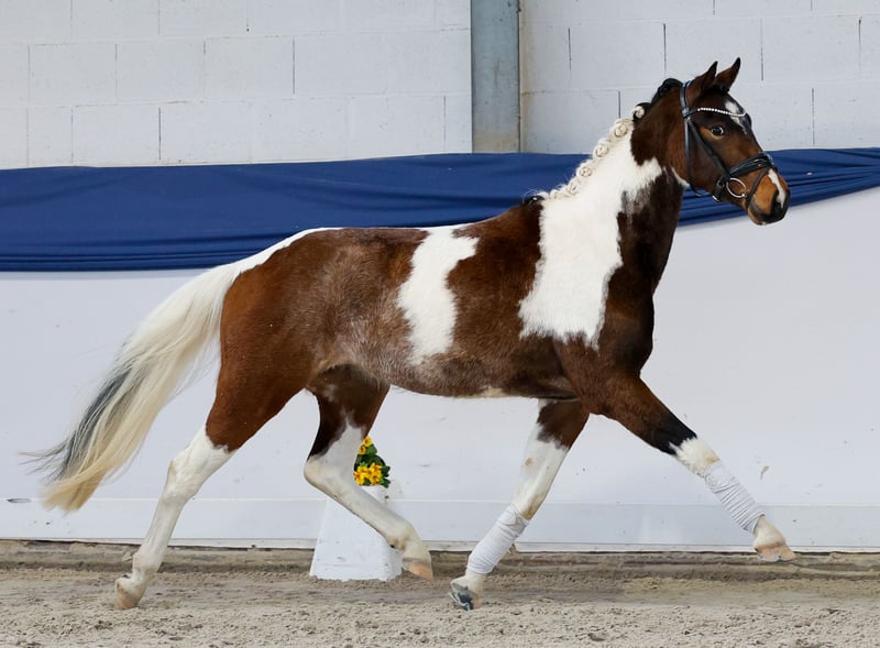 In unserer Kollektion stehen streng selektierte Youngster f�r alle Anspr�che: Ausbildungs-, Zucht- und Kinderponys Hier gelangen Sie zur Gesamtkollektion: https://ponyforum.auction Und hier kommt der Buddy und Aufzuchtpartner von Quick! Ebenfalls ein Reitpony, in dessen Adern hauptsächlich Lewitzerblut fließt. Ein ganz genügsames und unkompliziertes Pony, das einen ausgesprochen freundlichen Charakter hat. Gemeinsam mit seinem ebenfalls gescheckten Freund Quick Romance hat er eine robuste Herdenaufzucht genossen und wurde vor ein paar Wochen aufgestallt, um die ersten Grundkenntnisse für die Ausbildung zum Kinderpony zu erlangen. Keiner konnte jedoch ahnen, dass die beiden Ponyfreunde SO cool sind und wirklich alles sofort mitmachen! Und so ging es alles ganz schnell… die Kinder saßen ruckzuck auf den Ponys, die wirklich jeden Quatsch mitmachen. Quick Romance kann schon alle drei Grundgangarten frei unter dem Sattel geritten werden, am liebsten tatsächlich im Gelände. Er kennt schon Bodenarbeit und Ponyspiele und ist einfach ein perfekter Ponyfreund! Eine uneingeschränkte Empfehlung als Kinder- und Familienpony, einfach ein super Kumpel zum Spaß haben!