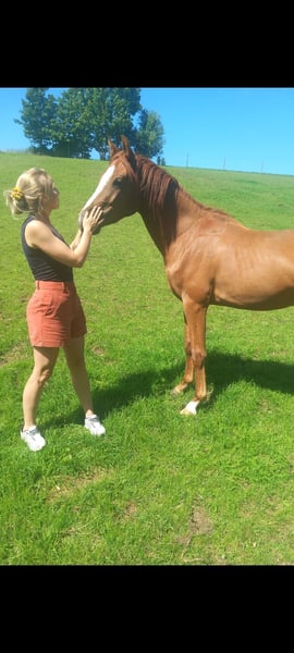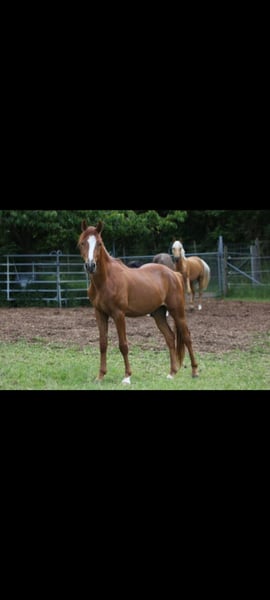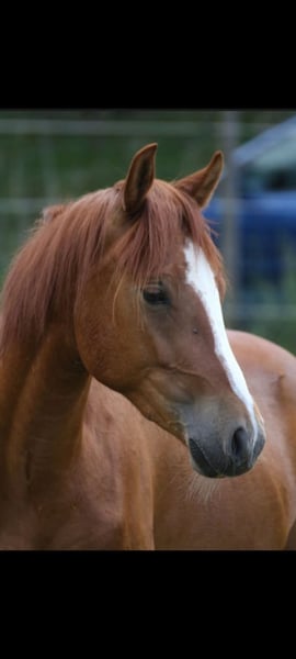 **Sales Advertisement: German Riding Pony Gelding** I am looking for a loving new home for my beautiful chestnut gelding, born in 2023. This charming German Riding Pony is ideal for riders seeking a reliable and honest partner. He impresses with his curious and open nature, is very eager to learn, and has appealing basic gaits. Currently, he is on summer pasture with 5 other geldings/stallions. This herd is mixed in age (where he could stay for a while after the purchase if interested). He is well-socialized and knows how to interact with other horses. He is friendly towards people and is accustomed to daily handling. He is halter-trained and allows for loading, grooming, and care. He also behaves exemplary with the farrier. I wish for him to find a loving new home where he can continue to gain positive experiences. **Features:** - Breed: German Riding Pony - Gender: Gelding - Year of Birth: 2023 - Color: Chestnut - Current Height: 1.41m - Quarterback's Junior x Cartusch If you are interested or have questions about this wonderful pony and would like to offer him a loving home, I look forward to your message.