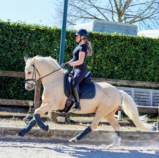 VIDEO https://youtube.com/shorts/GTvLZ7j_jy4?is=bKM8P9EqQ6KBP_Xa Dieser absolut tolle Kerl abstammen von Diamond Touch NRW sucht ein absolutes Traum Zuhause. Solide in Ruhe angeritten, hat er niemals auch nur eine falschen Tritt gemacht. Ob im fremden Gelände, in der Halle, auf dem Springplatz oder bei seinem ersten Auswärtstraining mit toller Osterdekorstion, stellt er hier seinen Traum Charakter unter Beweis. Er lässt sich brav auch mit Pad reiten und ist von Anfang an auch von kleineren Kindern super zu handeln gewesen. Inzwischen auch von 7 jährigen Mädchen begleitet geritten und gesprungen und lässt sich auch auswärts von 7 j Kind verladen. . Hier ist er mit und ohne Sattel einfach ein Schatz! Er bleibt zum Kuscheln mit den Kids in der Box entspannt liegen, ist aber unter dem Sattel fein genug um sein Potential auch im FEI Sport entfalten zu können. Er macht brav einen kleinen Sprung und wir erwarten, dass auf den in Kürze geplanten Turnieren genau so einen Topjob macht wie daheim. Er deckt super ab ( Reiterin auf den Bildern 1,68) und ist leicht in der Hand und easy an den Zügel zu reiten. Der Traumkerl zeigt 3 sehr gute Grundgangarten mit FEI Potential. Er ist super artig beim Schmied -selbst beim ersten Beschlag und war hier entspannt zu scheren. Gute Röntgenbilder inkl Rücken liegen bereits vor. Ein Traum Pony für eine Mutter/ Tochter- oder Geschwister-Kombination bei der ein Reiter dieses Traumpony weiter ausbilden kann. Videos und weitere Infos unter : 0177 275 9886 ALLE ANGABEN OHNE GEWÄHR, DA SIE AUF SUBJEKTIVEN EINDRÜCKEN DES ANBIETERS UND/ ODER VERKÄUFERS BERUHEN.