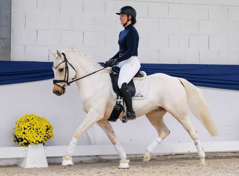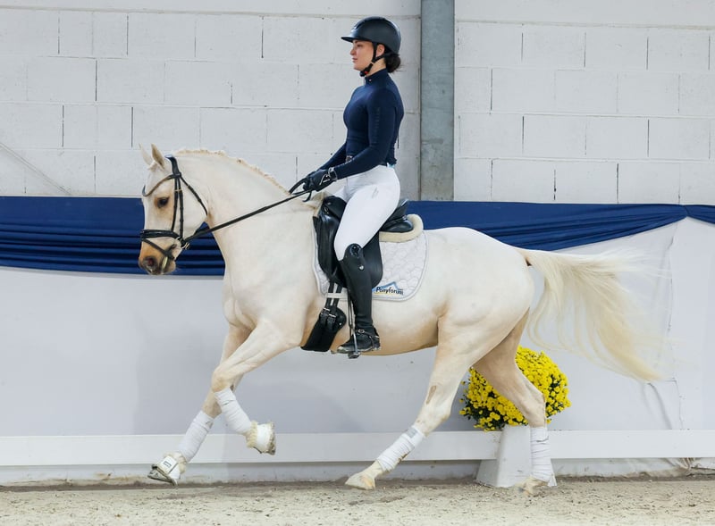 In unserer Kollektion stehen streng selektierte Reitponys f�r alle Anspr�che: Ausbildungs-, Zucht- und Kinderponys Hier gelangen Sie zur Gesamtkollektion: https://ponyforum.auction Domingo ist ein unkomplizierter vierjähriger Reitponywallach mit guter Knochensubstanz. Auch größere Reiter deckt er mit seinem Rahmen hervorragend ab! Aktuell steht der Wallach sicherlich noch in der körperlichen Entwicklung und wird noch weiter auslegen. Domingo hat eine umfassende Grundausbildung genossen und kennt sowohl das Reiten in der Halle wie auch auf dem Außenplatz. Ein absolutes Augenmerk ist sicherlich auf sein Talent im Parcours zu legen! Er ist parcourssicher und hat große Freude am Springen. Er ist superkonzentriert am Sprung, zieht immer gut hin und fußt vermögend ab. Er steht sicher an den reiterlichen Hilfen und gibt seinem Reiter ein bequemes Sitzgefühl! Mit seiner entspannten Art und seinem gelassenen Interieur empfiehlt er sich perfekt als Nachwuchspony für Familien. Er wird sicherlich auch schon bald unter Kindern einsetzbar sein und auch hier einen guten Job machen. Ein top Nachwuchsponys für Reiter, die ein doppeltveranlagtes und ehrliches Pony suchen!