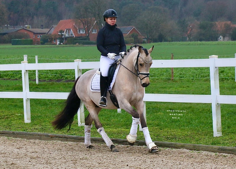 „Cinzano“ ist ein 3-jähriges Pony mit dem entsprechenden Wow-Faktor, bereits auf den ersten Blick kann er begeistern. Erst seit wenigen Monaten unter dem Sattel kann er bereits jetzt mit seiner unerschrockenen Art und Nervenstärke überzeugen. Egal ob Halle oder Platz, oder auch die Jagd im Hintergrund bei unserem Video-Termin, „Cinzano“ ist absolut cool und unerschrocken. Im Umgang ist der Wallach absolut brav und liebt es von seinem Reiter verwöhnt zu werden. Neben seinen tollen Charaktereigenschaften und seinem bildschönen Aussehen bringt er drei gute Grundgangarten mit. „Cinzano“ deckt mit seinem Rahmen problemlos größere Reiter ab. „Cinzano‘s“ Vater Charmeur ist ein direkter Nachkomme des legendären Vererbers „FS Champion de Luxe“. Über diese Linie, wie auch über die Mutterlinie „Benedict“ die auf den altbewährten Vererber „Brillant“ zurückgeht, ist „Cinzano“ doppelt veranlagt. Sein Vater, Muttervater und Großvater sind bekannt für kopfklare und rittige Ponys. Durch seine abgeklärte und unerschrockene Art eignet sich der Wallach bereits jetzt für jüngere Reiter oder aber auch eine Mutter-Tochter-Kombination. Bei weiterer Förderung hat man mit „Cinzano“ einen tollen Allrounder, mit dem die Türen für alle Sparten der Reiterei offenstehen. Ein röntgonologischer Tüv von November 2025 liegt vor. https://youtu.be/KoU2d0oyzso?si=_ZsyBydjLm3adpJY Bei ernsthaftem Interesse melden Sie sich gerne telefonisch unter der +491707941333.