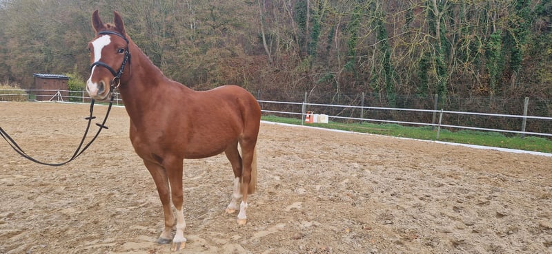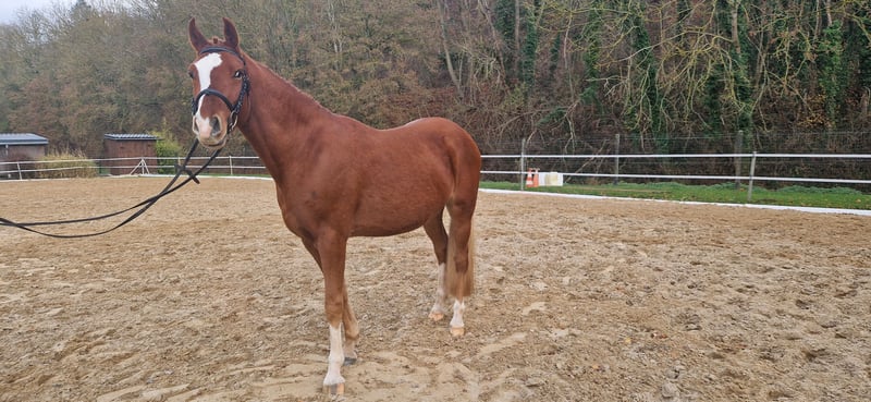 We are offering our 4-year-old gelding (Dornik Double × Principal Boy), who possesses excellent basic gaits and is very easy to handle, curious to learn, and well-mannered. He is already very well proportioned in conformation and has been trained to drive single with a cart. He has also been trained with double lungeing. He has not been ridden yet. He is completely herd-safe, farrier- and loading-friendly. Please contact us to arrange a viewing appointment if interested. Additional videos are available upon serious interest via email or WhatsApp. Contact at: 0173-5800815