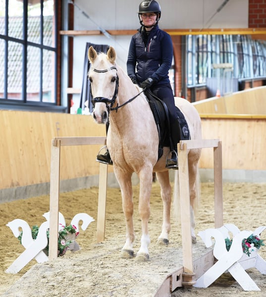 Djulyo wurde aufgrund seiner Größe erst spät angeritten und erst im letzten halben Jahr intensiver gefördert. Gerade hat er seinen ersten Turnierstart gemeistert und direkt eine Schleife mitgebracht. Er kennt sogar schon Mannschaftsreiten und liebt auch Anhänger fahren. Ideales Pony für kleine Erwachsene oder erfahrene Jugendliche mit feiner Hand. Er befindet sich jetzt auf sicherem A- Niveau hat aber wenig Lust zum Reiten. Am liebsten wird er nur 2 bis 3 mal die Woche geritten und am allerliebsten macht er Bodenarbeit oder Kunststücke. Er ist sehr intelligent, lernt schnell und möchte immer was neues machen. Nichts für Langweiler, sondern für jemanden, der eine Herausforderung sucht. Nur einmal Probereiten bringt bei ihm gar nichts, denn Leute die er nicht kennt, mag er erstmal nicht... man muss also öfter kommen und am besten sich auch mit ihm beschäftigen und nicht nur rauf und wieder runter, denn ER sucht sich seinen Reiter aus... Er lief bis 4 jährig in einer Hengstgruppe im Offenstall mit 24/7 Weide, dann in einer Offenstallgruppe mit 4 Stuten und jetzt steht er gerade in einer Box. Er kann problemlos 24/7 auf der Weide laufen und ist auch gerne draußen. Er läuft schon immer barhuf. Seine Familie wohnt auch bei mir, er ist selbst gezogen und seine Oma mit 29 ist noch topfit. Er sucht seinen Herzensmenschen, wo er für immer bleiben kann. Platz vor Preis...bei ihm muss es einfach passen und das ist nicht einfach 3-jährig TÜV gemacht ohne Befund, Zahnarzt und Osteo sind jährlich bei uns
