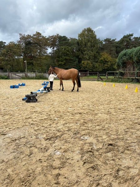 Harry wird im Auftrag über unsere Seite angeboten. Sein Standort ist in Wegberg Harbeck, wo er in einem tollen Offenstall lebt und ausgebildet wird. Den direkten Kontakt zum Besitzer bekommt ihr über +4917654441931 Harry ist ein toller, vielseitiger Ponywallach, der altersgerecht ausgebildet wird. Seine ersten Turniererfahrungen hat er - dank seines tollen Charakters - in Dressurreiterprüfungen mit Kindern sammeln können. Das er nervenstark und sicher ausgebildet ist, konnte er auf seinem ersten CHU für die Düsseldorfer Studentenreiter beweisen. Hier lief er mit 3 Reitern und einer Vorbereitungszeit von je 3 Minuten sicher die A Runde mit. Auch beim Springen hat er viel Spaß und nimmt erfahrene, wie unerfahrene Reiter sicher mit. Im Gelände und Straßenverkehr ist er ebenfalls sicher und routiniert unterwegs. Kennen lernen könnt ihr ihn nach telefonischer Absprache unter der oben genannten Nummer.